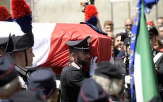 Il feretro è stato portato in chiesa a portato a spalla da 6 carabinieri, scortati da 4 colleghi in alta uniforme