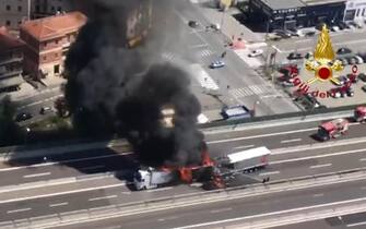 L'incidente è avvenuto vicino a Borgo Panigale. Ci sono diversi feriti. Sul posto una colonna di fumo visibile anche da lontano. Riaperto al traffico il tratto dell'autostrada tra Casalecchio e il bivio con la A14 in direzione dell'A1, rimane chiuso il tratto sud