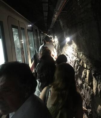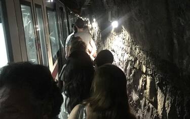 Per raggiungere la stazione metro di Colosseo, i passeggeri hanno proseguito a piedi sulla banchina di sicurezza presente nel tunnel ferroviario, illuminata dalle luci di emergenza