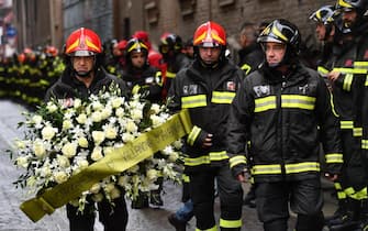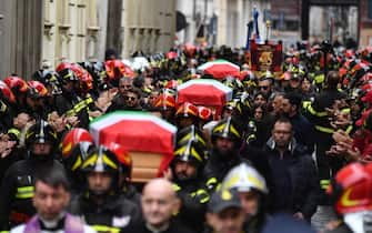 I feretri hanno lasciato la camera ardente posizionati sulle autoscale dei pompieri e, una volta arrivati alla cattedrale dei Santi Pietro e Marco, sono stati accompagnati dalle sirene dei mezzi dei pompieri e dall'applauso della gente in lacrime, per poi essere portate a spalle dai colleghi tra due ali di folla