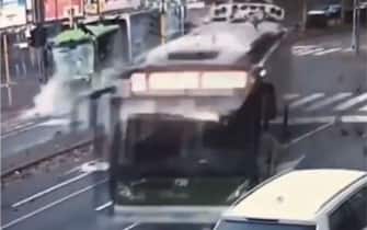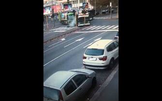 Incidente tra filobus ATM e camion a Milano: il momento dell'impatto. FOTO