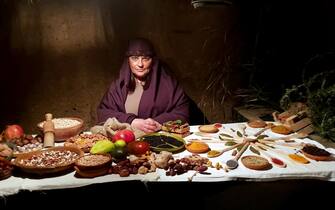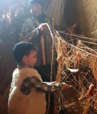 Lungo il percorso verso la scena della Natività, segnato con illustrazioni in italiano e in ebraico, si incontrano botteghe, prodotti, cibi e costumi di una Ventotene antica, in uno scenario di 2000 anni fa