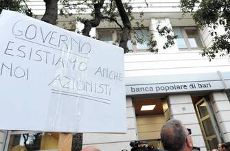 Bari, proteste dei risparmiatori di Banca Popolare davanti la sede. FOTO