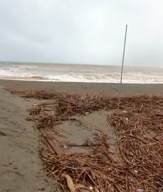 Il mare è avanzato fino a cancellare la spiaggia, tra i forti venti di burrasca