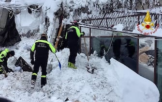 Giunti a Rigopiano, vengono subito tratte in salvo due persone, scampate alla valanga perché si trovavano all'esterno dell'hotel. Poi dalle macerie vengono estratte le prime vittime