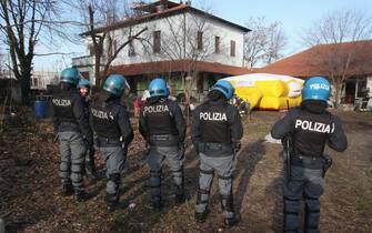 Intervento di polizia e carabinieri per liberare l'edificio in piazza Emilio Alfieri, nel capoluogo lombardo. Alcuni attivisti sono saliti sul tetto e i vigili del fuoco, per precauzione, hanno gonfiato il cuscino pneumatico. LA FOTOGALLERY