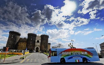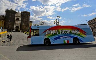 Intanto a Napoli in queste ore alcuni autobus dell'Eav sono stati ridipinti con il disegno di un arcobaleno e la scritta "Andrà tutto bene"