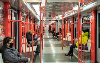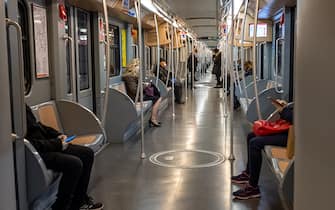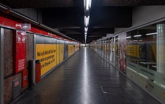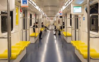 A causa delle nuove misure restrittive introdotte dall'ordinanza nazionale e da quella regionale, la metropolitana di Milano, anche all'ora di punta, risulta praticamente deserta