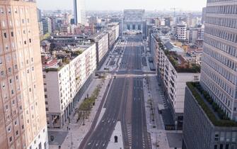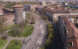 Da Piazza del Duomo all’Arco della Pace, da Piazza Castello a Loreto, fino ai viali. Gli scatti dall’alto mostrano il capoluogo lombardo quasi completamente vuoto, in una giornata di fine settimana durante le restrizioni imposte per l’emergenza Covid-19
