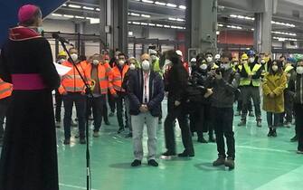 Un momento della visita dell'arcivescovo di Milano, monsignor Mario Delpini, ai padiglioni della Fiera di Milano