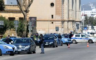 Un posto di blocco delle forze dell'ordine si trova davanti al Foro Italico nel capoluogo siciliano
