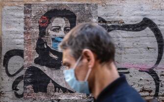 Coronavirus, Anna Magnani con la mascherina in un murales a Trastevere. FOTO