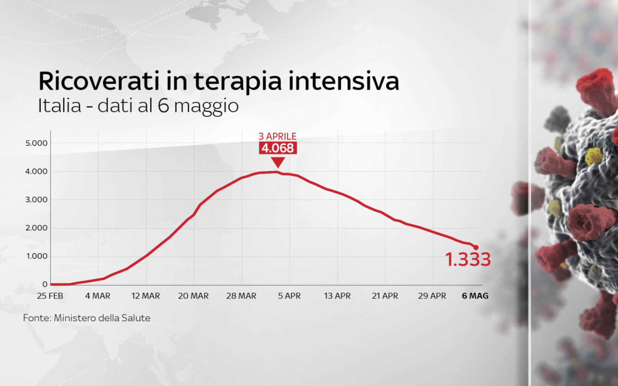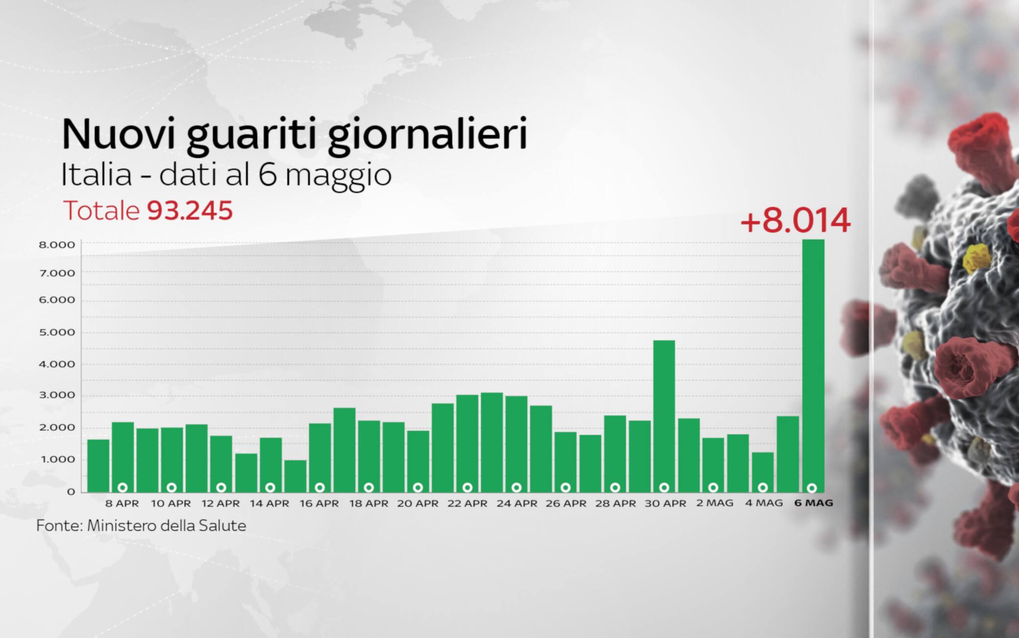 Le persone guarite nelle ultime 24 ore sono 8.014, per un totale di 93.245. La Lombardia precisa che il numero così alto di guariti, rispetto a ieri, è dovuto a un aggiornamento del dato e fa riferimento a guariti anche nelle giornate precedenti e non solo a ieri. Il totale delle vittime è di 29.684, 369 in più rispetto a ieri. Continua il calo dei pazienti in terapia intensiva: sono 1.333, 94 in meno rispetto a ieri. Il dato è in calo per il trentaduesimo giorno consecutivo. Dei pazienti attualmente positivi, 15.769 sono poi ricoverati con sintomi - 501 in meno rispetto a ieri - e 74.426 sono in isolamento domiciliare. I tamponi eseguiti sono 64.263 in più rispetto a ieri, per un totale di 2.310.929. Il numero complessivo di tamponi giornalieri include anche i tamponi fatti "in uscita", ovvero le persone che dopo la malattia o l'isolamento domiciliare vengono sottoposti a uno o più tamponi prima di poter essere definiti "guariti". Sono invece 1.549.892 le persone sottoposte al test, al netto di quanti tamponi abbiano fatto, 37.771 in più rispetto a ieri. Sono questi i dati del bollettino quotidiano della Protezione Civile sulla diffusione del contagio (IL CALENDARIO DELLE RIAPERTURE - LA FASE 2 IN ITALIA: COSA SI PUÒ FARE E COSA NO - ISTAT: IN ITALIA A MARZO +49% DEI DECESSI RISPETTO AGLI ANNI SCORSI).