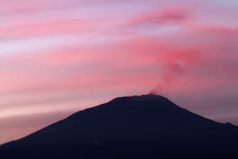 Il vulcano siciliano ha regalato al tramonto uno spettacolo nello spettacolo. L’immagine ha fatto da subito il giro dei social. L’incremento nell’emissione di cenere interessa soprattutto il nuovo cratere sud-est