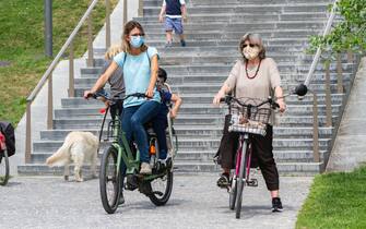 Nessun assalto, ma a Milano gli spazi verdi - grazie anche alla giornata di sole - si sono riempiti di persone, in bici o a piedi. Quasi tutte indossano le mascherine. Tante le famiglie. Cerchi rossi nei prati per indicare dove sedersi. Code ordinate davanti alle pasticcerie e ai fiorai per la Festa della mamma