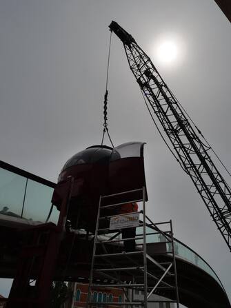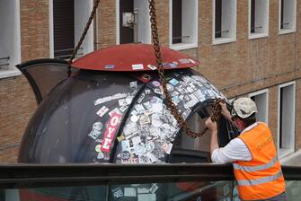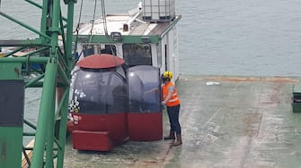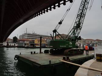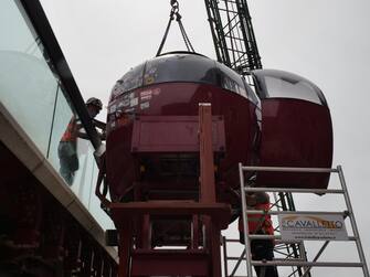 Le operazioni sono state velocissime, si pensava che sarebbero state concluse intorno alla mezzanotte, ma gli addetti in poche ore hanno rimosso la cremagliera sulla 'spalla' del ponte ideato da Santiago Calatrava e quindi hanno sganciato l'ovovia caricandola su una chiatta.