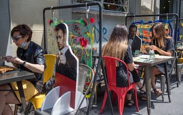 Il proprietario di un locale di Milano ha pensato a una trovata che sembra piacere ai suoi clienti. Per mantenere le distanze obbligatorie in base ai protocolli della Fase 2 dell’emergenza coronavirus, ha piazzato tra i suoi tavoli delle sagome con le fattezze di personaggi famosi