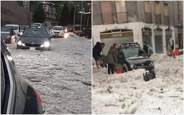 A Nembro l'acqua in strada ha bloccato le auto, con lunghe code e ingorghi, che si sono verificati su tutte le strade della Valle Seriana. Una grandine tanto fitta che sembrava neve