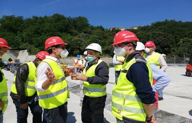 Il presidente della Regione Liguria Toti e il sindaco di Genova Bucci hanno fatto un sopralluogo dei lavori sul nuovo viadotto. "W l'Italia che non si arrende!", scrive Toti su Twitter, ringraziando chi ha lavorato al progetto