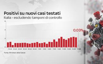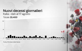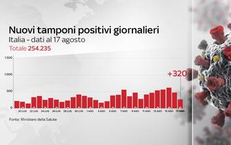 Secondo il bollettino diffuso sul sito del ministero della Salute, aggiornato al 17 agosto, nelle ultime 24 ore si sono registrati 320 nuovi casi, 182 guariti e 4 vittime in più. Sono 58 i malati ricoverati in terapia intensiva