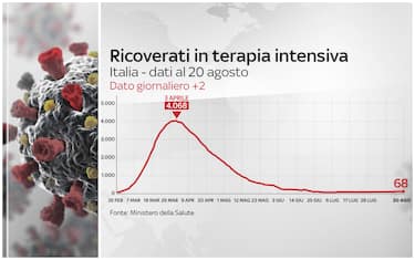 Secondo il bollettino quotidiano del ministero della Salute del 20 agosto, in Italia le persone complessivamente risultate positive al coronavirus, compresi guariti e deceduti, sono 256.118. Le vittime, in totale, sono 35.418, con 6 decessi nelle ultime 24 ore. Il totale dei positivi, compresi morti e guariti, registra un incremento di 845 casi. I pazienti ricoverati in terapia intensiva sono 68, due in più di ieri