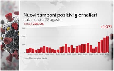 Secondo il bollettino diffuso sul sito del ministero della Salute, aggiornato al 22 agosto, nelle ultime 24 ore si sono registrati 1.071 nuovi casi, 243 guariti e 3 vittime in più. Sono 64 i malati ricoverati in terapia intensiva: 5 in meno di ieri. Ecco tutti i dati