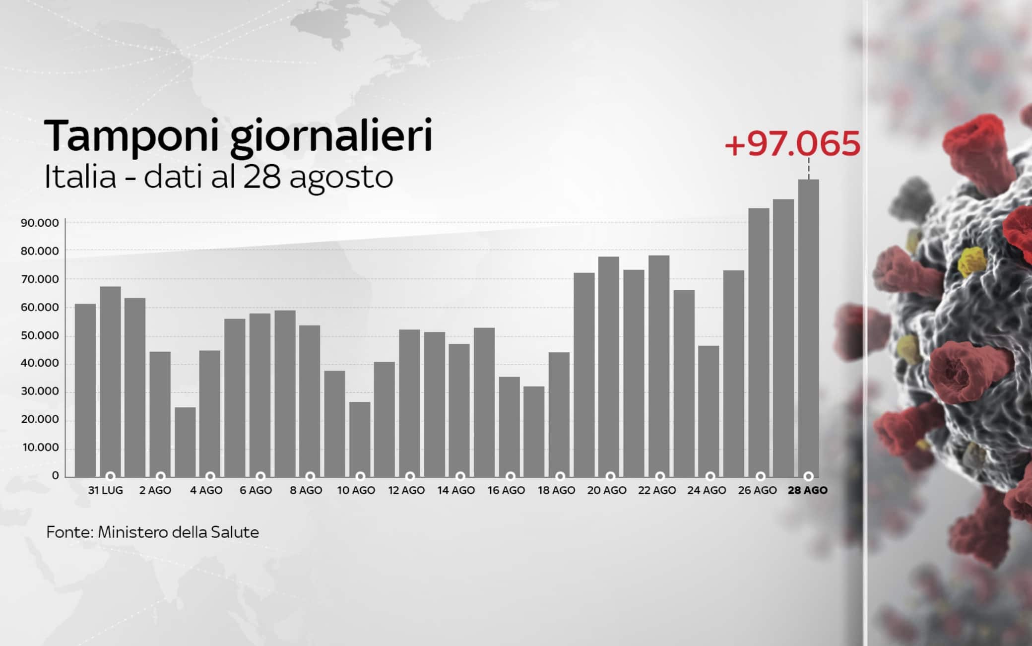 Coronavirus Italia, bollettino del 28 agosto: 1.462 nuovi casi e nuovo record di tamponi