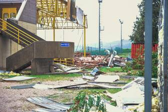 Nel Veronese, un tromba d'aria si è abbattuta su Montecchia Crosara (foto), provocando danni consistenti al palazzetto dello sport, dove sono anche crollare alcune piante