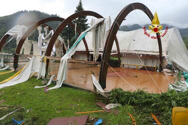 Il maltempo colpisce il Nord Italia con grandinate, forti raffiche di vento ed esondazioni. I danni maggiori si registrano in Veneto, soprattutto nella provincia di Vicenza, in particolare la zona di Arzignano, e nel Veronese. Nel Varesotto, invece, un uomo di 38 anni risulta disperso dopo che è stato travolto da un torrente ingrossato. . In Toscana, a Marina di Massa, nella notte un albero è caduto su una tenda da campeggio: morta una bambina. Nella foto: Arzignano
