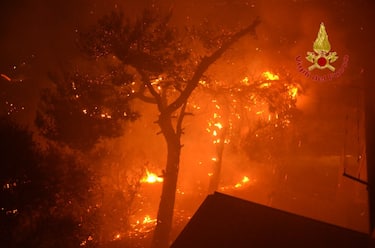 Il rogo è divampato alle 21 in cinque punti diversi e contemporaneamente. Le fiamme hanno superato la zona abitata, per poi allargarsi verso i boschi. Le operazioni di spegnimento sono state rese difficoltose per il forte vento di scirocco da sud-sudest, con raffiche fino a 50/60 km/h