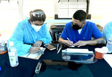 Asl monta tenda per eseguire tamponi