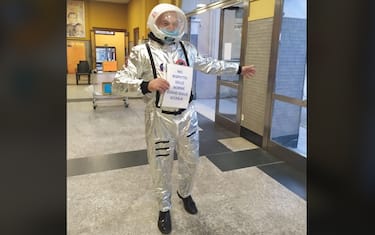 Novara, preside in tuta d’astronauta: “Riaprire è un’impresa spaziale”
