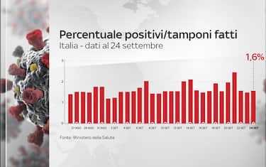 In Italia resta stabile il rapporto tra positivi e tamponi fatti: 1,6%. È quanto emerge dal bollettino quotidiano del ministero della Salute del 24 settembre sull’emergenza coronavirus