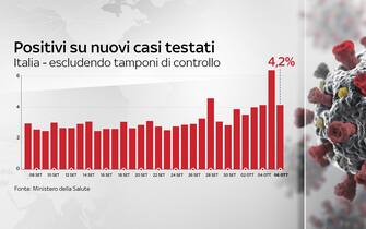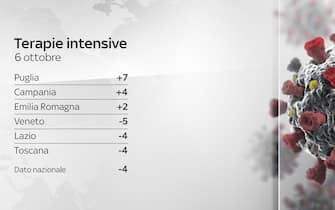 Covid: oggi 6 ottobre 138 nuovi ricoveri (ieri +200), -4 in terapia intensiva (ieri +20)