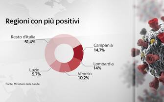 La Campania ha anche l'indice più alto di percentuale sul rapporto tra positivi e casi testati (7,2%). Seguono Valle d'Aosta e Sardegna