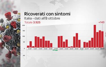 Sono 143 i nuovi ricoveri segnalati nelle ultime 24 ore, ieri erano stati 157. Ventuno in più le persone in terapia intensiva, mentre ieri era stato registrato un +18. Sono questi i numeri che emergono dal bollettino del ministero della Salute dell'8 ottobre sulla situazione coronavirus in Italia. In totale, i ricoverati con sintomi sono 3.925 e le persone in terapia intensiva 358