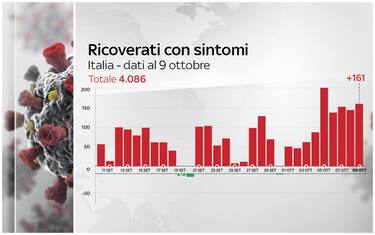 Covid, oggi 9 ottobre 161 nuovi ricoveri (ieri 143), + 29 in terapia intensiva (ieri +21)