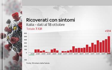 Covid, oggi 18 ottobre 514 nuovi ricoveri (ieri 439), +45 in terapia intensiva (ieri +67)