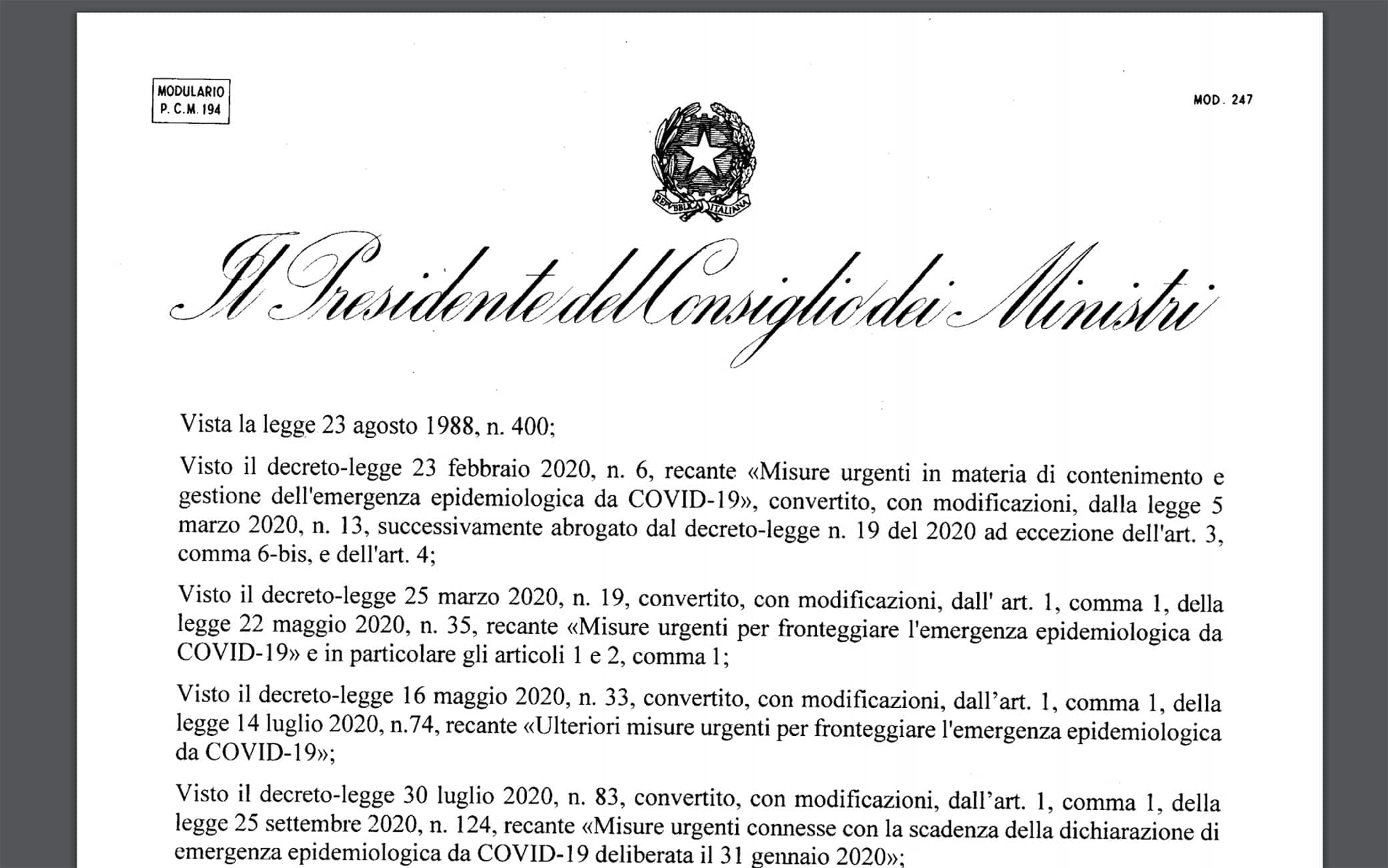 È stato pubblicato sulla Gazzetta Ufficiale il testo del nuovo Decreto del presidente del Consiglio dei ministri con i provvedimenti decisi dal governo per cercare di arginare il nuovo aumento di casi di coronavirus. Le norme entrano in vigore il 19 ottobre e valgono fino al prossimo 13 novembre