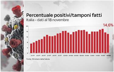 Sono 34.283 i nuovi contagi di Covid-19 in Italia, a fronte di 234.834 tamponi giornalieri effettuati, con la percentuale di positivi che scende al 14,6% (ieri 15,4%). Questi i dati riportati da bollettino del ministero della Salute del 18 novembre
