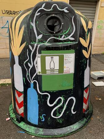 Oltre ai murales, in giro per questo quartiere, si incontrano campane di vetro come questa: sono diventate opere d'arte in quella che è stata voluta come Galleria d'Arte Urbana. Ci hanno lavorato street artist della città per dare nuova vita, insieme, alle strade del quartiere e alla raccolta dei rifiuti.