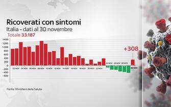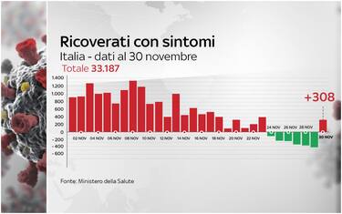 In Italia tornano a salire i ricoveri ordinari per Covid-19 dopo 6 giorni: al 30 novembre sono 33.187, con un aumento giornaliero di 308. Lo riporta il bollettino quotidiano del ministero della Salute