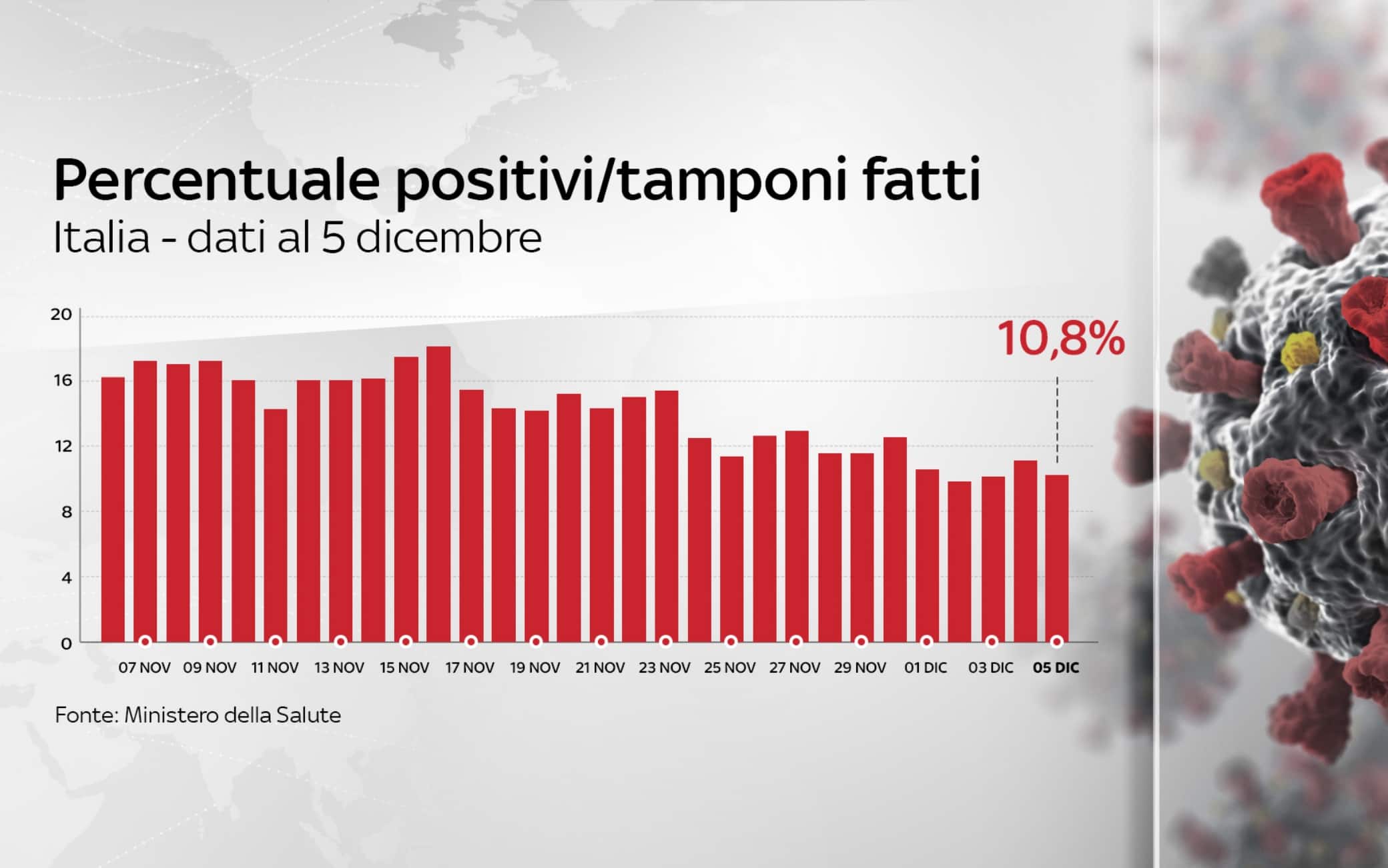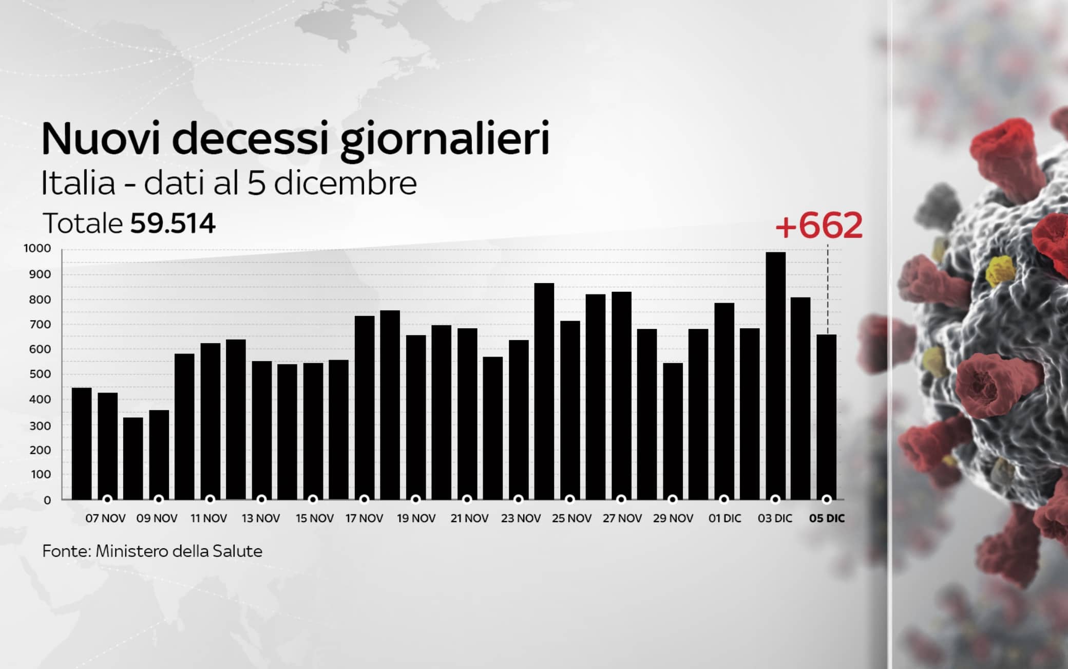 Coronavirus in Italia, bollettino 5 dicembre: 21.052 casi su 194.984 tamponi, 662 morti