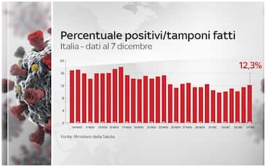 Secondo il bollettino del ministero della Salute del 7 dicembre, in Italia si registrano 13.720 nuovi casi su 111.217 tamponi. Il tasso di positività sale al 12,3%. Sono 528 i morti in 24 ore, i decessi totali arrivano a 60.606. Il numero dei positivi dall'inizio della pandemia, compresi morti e guariti, sale a 1.742.557. I guariti sono 19.638. Le persone in terapia intensiva sono 3.382 (-72 rispetto a ieri)