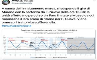 Anche l'Azienza della Mobilità Veneziana ha condiviso dei grafici per far capire le previsioni di acqua alta della giornata. Nel pomeriggio previsti oltre 140cm
