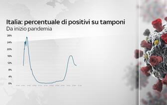 In grafica l'andamento della percentuale di positivi sui tamponi fatti