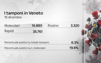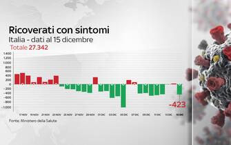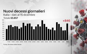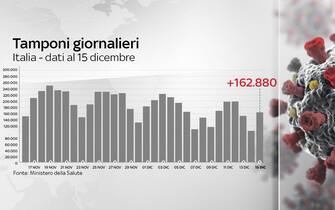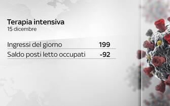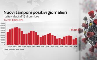 Dal bollettino del ministero della Salute del 15 dicembre emerge che i nuovi contagi giornalieri sono 14.844, a fronte di 162.880 test analizzati. Si registrano 846 vittime in 24 ore. Il numero di persone in terapia intensiva scende a 3.003 (-92)