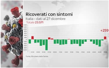 Secondo il bollettino del ministero della Salute del 27 dicembre, sono stati registrati 8.913 nuovi casi di coronavirus in Italia su 59.879 tamponi. Le vittime sono 298 in 24 ore. Tornano ad aumentare i ricoveri ordinari (ora 23.571). I pazienti ricoverati in terapia intensiva sono fermi a 2.580