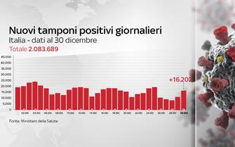 Nelle ultime 24 ore sono stati 16.202 i nuovi casi di coronavirus registrati in Italia (ieri erano stati 11.212). È questo il quadro che emerge dai dati del bollettino del ministero della Salute del 30 dicembre