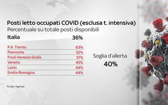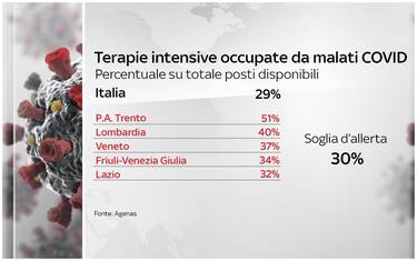 La provincia autonoma di Trento oltre a Lombardia, Veneto, Friuli e Lazio, superano il 30% di posti letto occupati in terapia intensiva, soglia considerata d’allarme